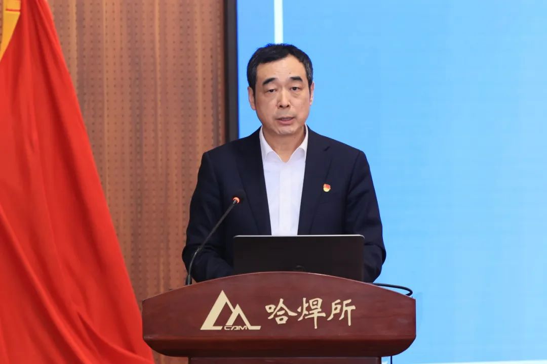 哈焊所党委书记、董事长雷振致欢迎辞;集团党群工作部(党委宣传部)副部长付占文作工作报告;哈焊所、基础院围绕弘扬科学家精神、思想政治“五心”工程建设作交流发言。